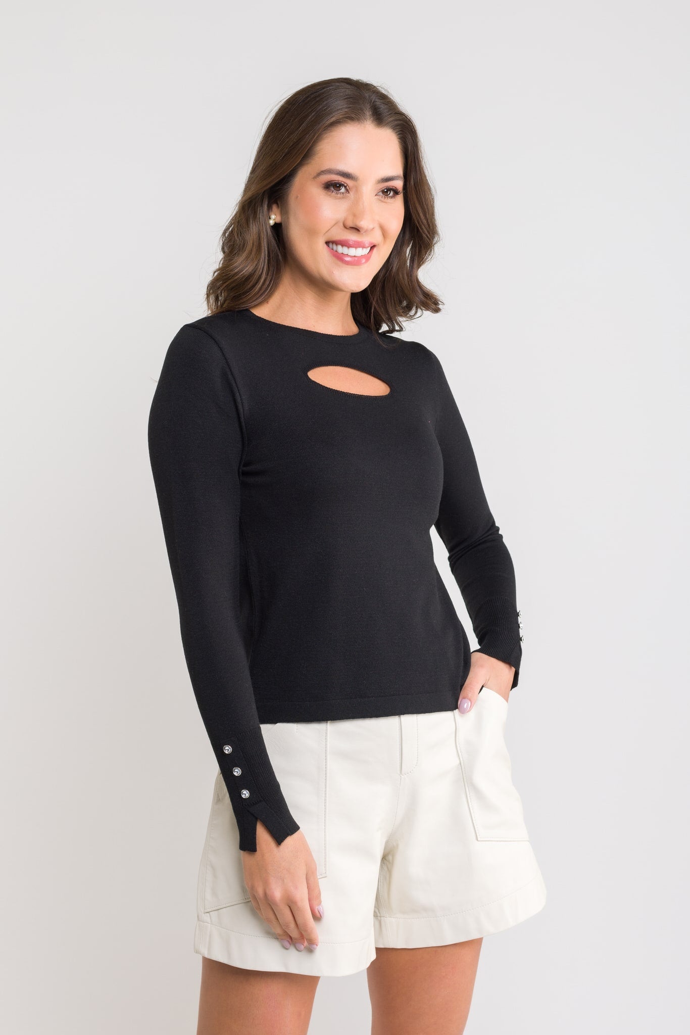 Blusa Tricot Ponto Pérola e Manga Bufante - Adri