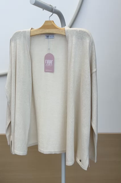 Casaco confeccionado em tricot, possui modelagem oversize, manga reta deslocada e acabamento sem aviamentos. Na lateral da peça, possui uma pequena fenda, o que da um charme a mais para a peça.