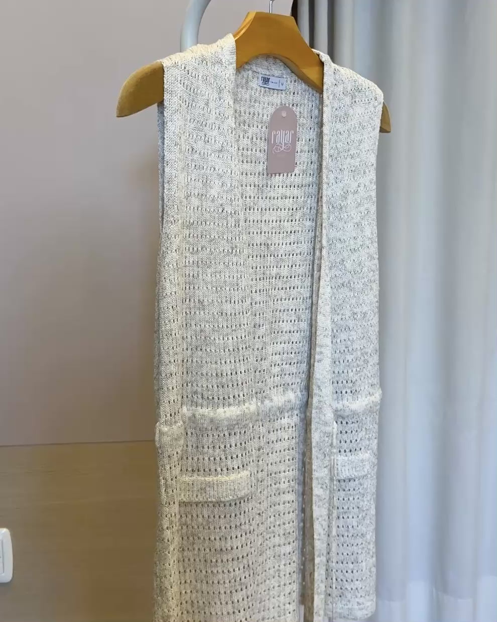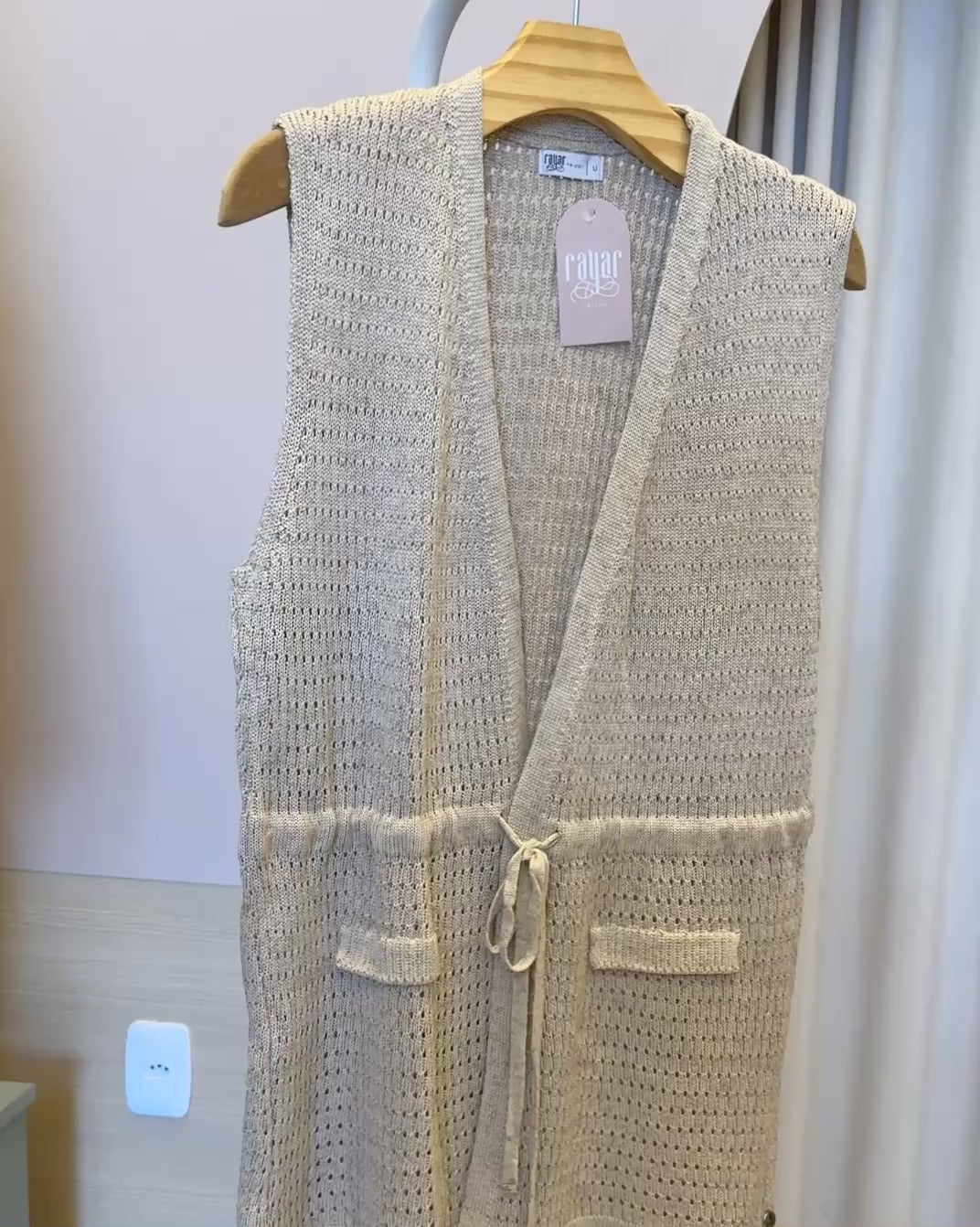 Colete em tricot com trama vazada que equilibra leveza e estrutura, ideal para climas quentes. O ajuste na cintura oferece controle total sobre o caimento, moldando-se perfeitamente ao seu corpo. Peça versátil que se adapta a diferentes contextos, desde looks minimalistas até composições mais elaboradas.